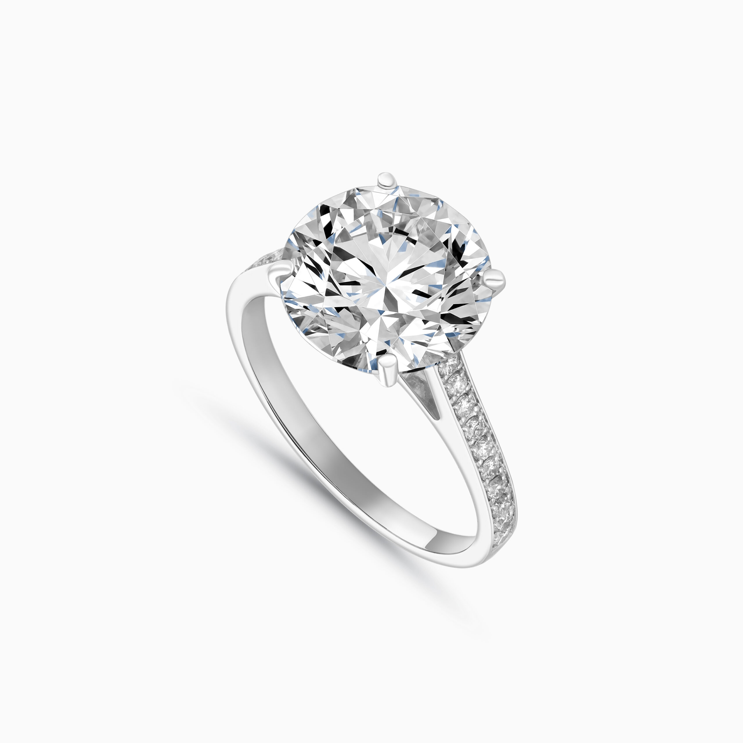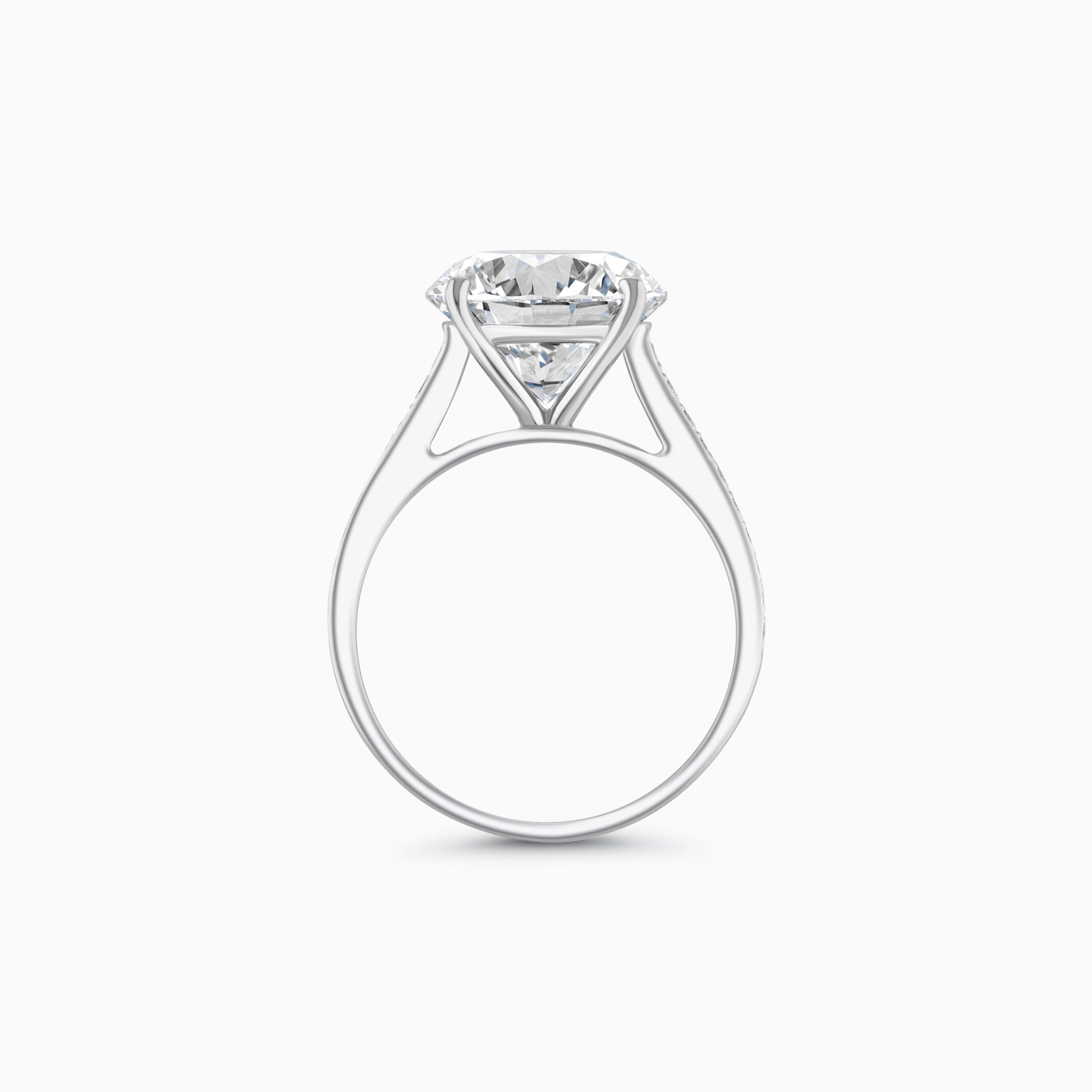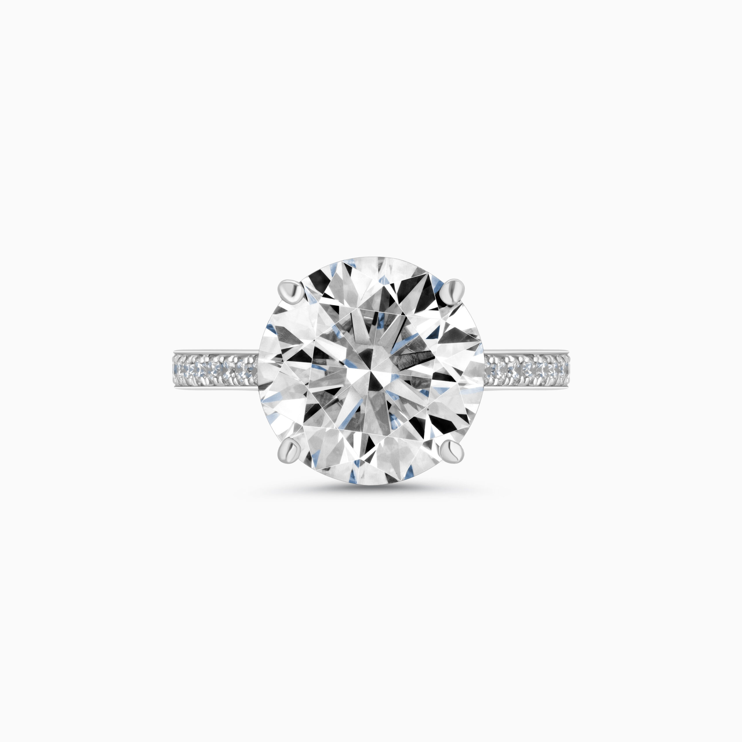 This exquisite 18k white gold solitaire ring features a 5.30-carat round brilliant center diamond and 20 side stones, totaling 5.51 carats. A true symbol of luxury and commitment.